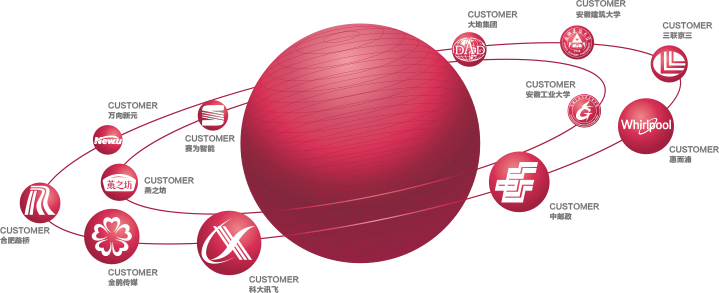 国轩、阳光电源、北京航空航天大学合肥创新研究院、海恒集团、中科华橙、合肥路桥、合肥虹达、安徽省侨联、安徽电视台、葛洲坝集团、安徽省城建设计研究总院、安徽三建、六安住建局、三联集团、葉佳茶叶、安徽中志轨道交通、超清科技、德众金融、淀川盛馀、安徽公益电影集团、安徽国路集团、安徽国电集团、鸿路集团、炫弘数控、新城地产、集友包装、三水集团、篮子农业、庐阳区商务局、庐阳区文化馆、梦成集团、民投金融、高铁南站、万达环球旅行社、安徽省消防总队、华美整形医院、合肥维多利亚整形医院、安徽省电力设计院、安徽全诚司法鉴定中心、宿州市园林局、合肥特警
